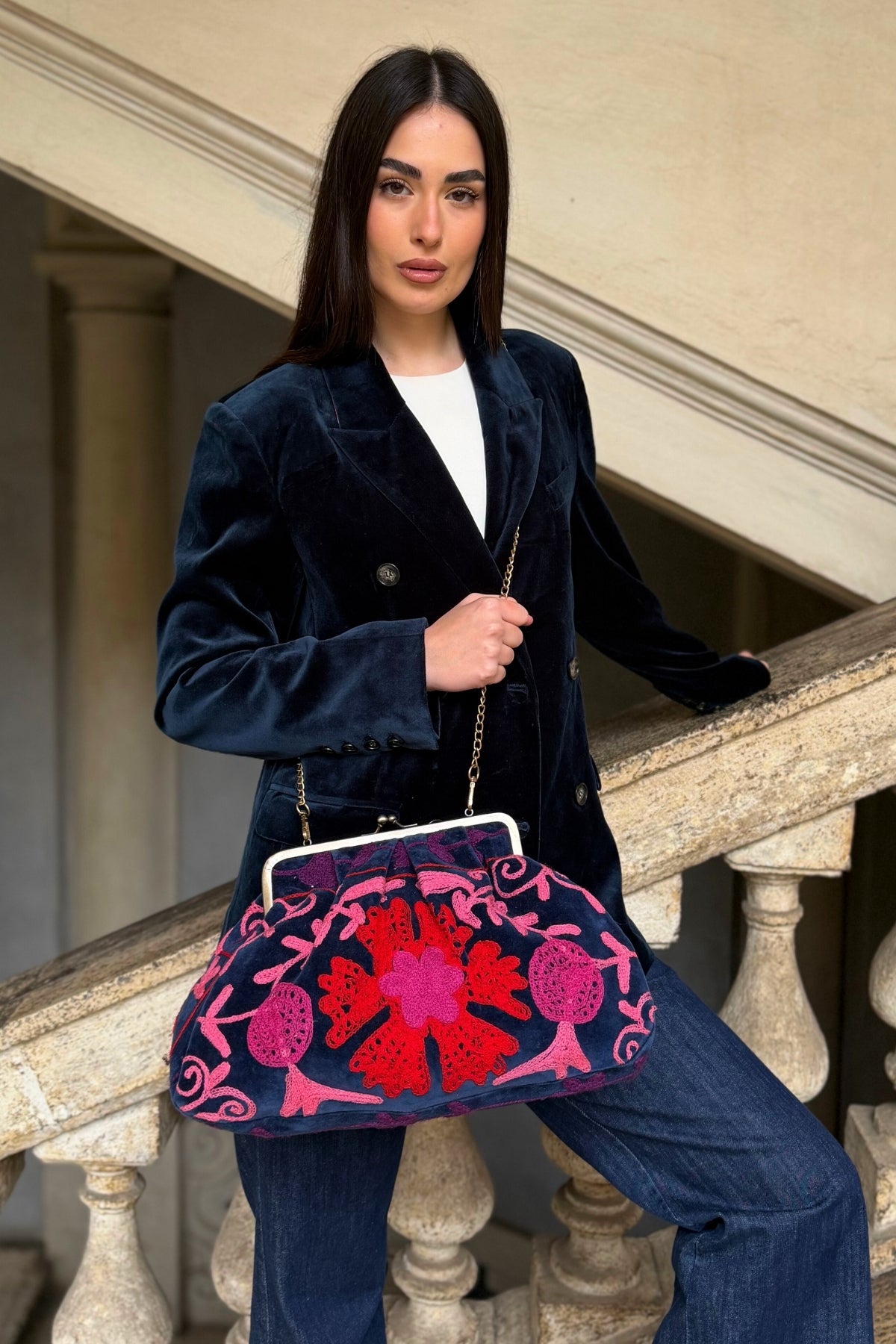 ARTEFILIA-MILANO - borsa ricamata katia clutch grande - ADIRA BLUE