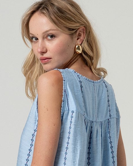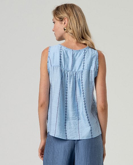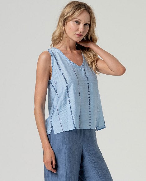 Top  spalline con scollo a V Celeste polvere