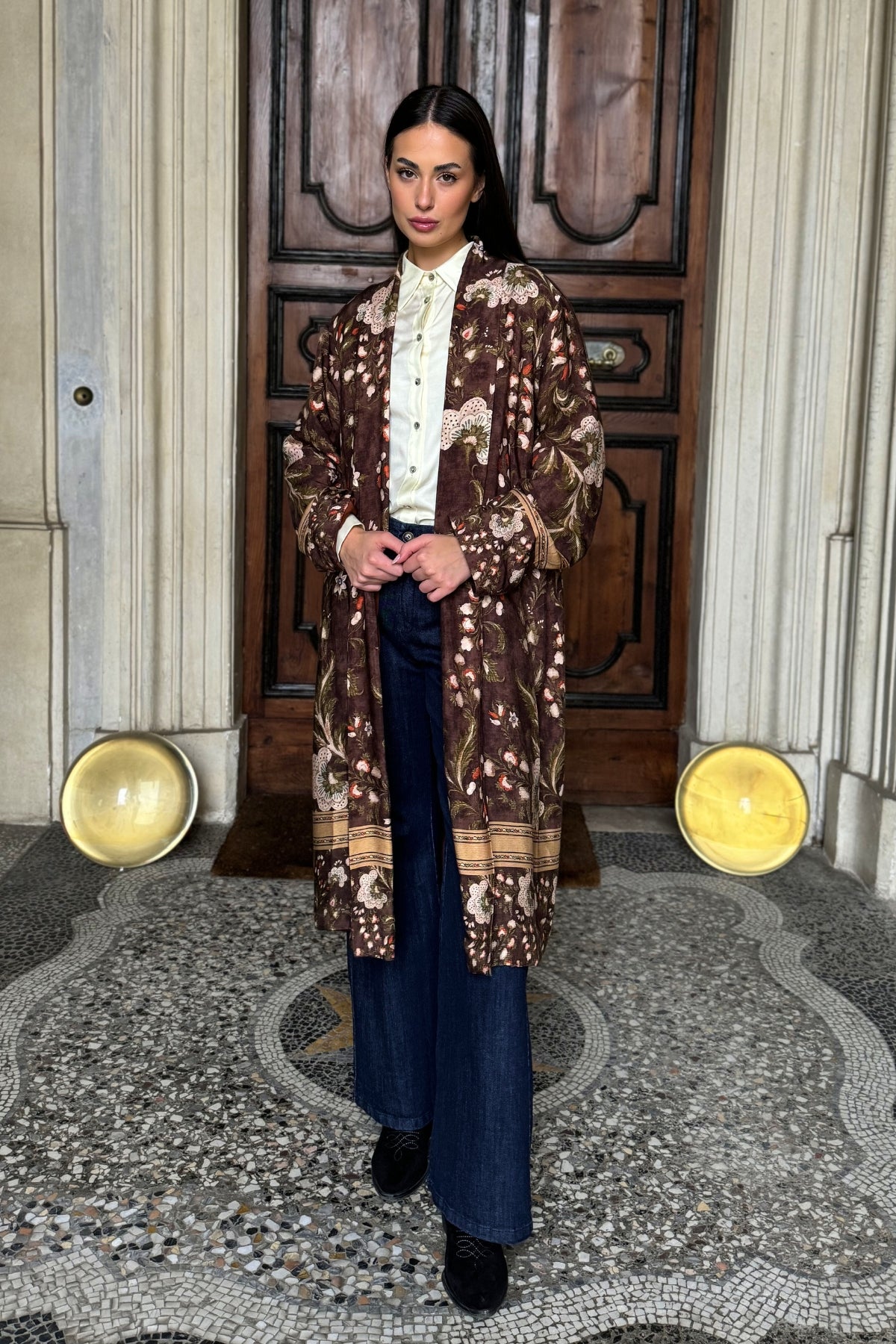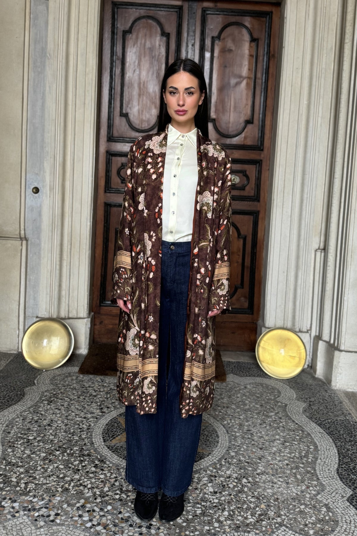 WU-SIDE - kimono fantasia viscosa - MARRONE