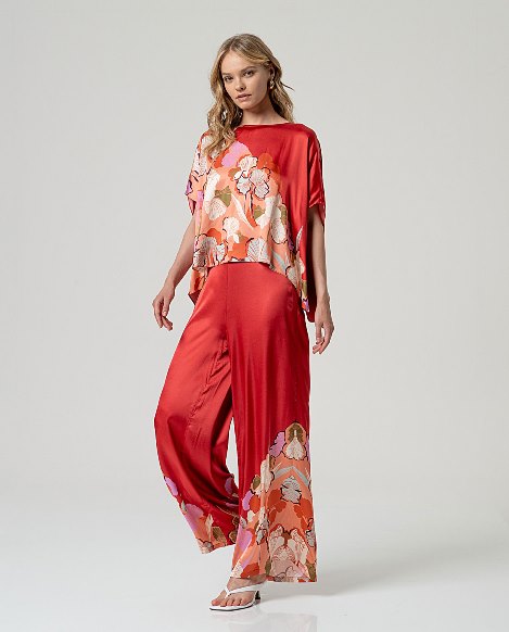 Blusa in viscosa con stampa che aggiunge movimento e personalità a uno stile consapevole. Il rosso vivace della base esalta il dettaglio decorativo, creando un pezzo che cattura l'attenzione pur mantenendo un'eleganza misurata. La viscosa fluida assicura una vestibilità confortevole e una drappeggiatura naturale, mentre la stampa conferisce carattere a look quotidiani e occasionali. SURKANA propone un equilibrio raffinato tra semplicità e espressione personale.