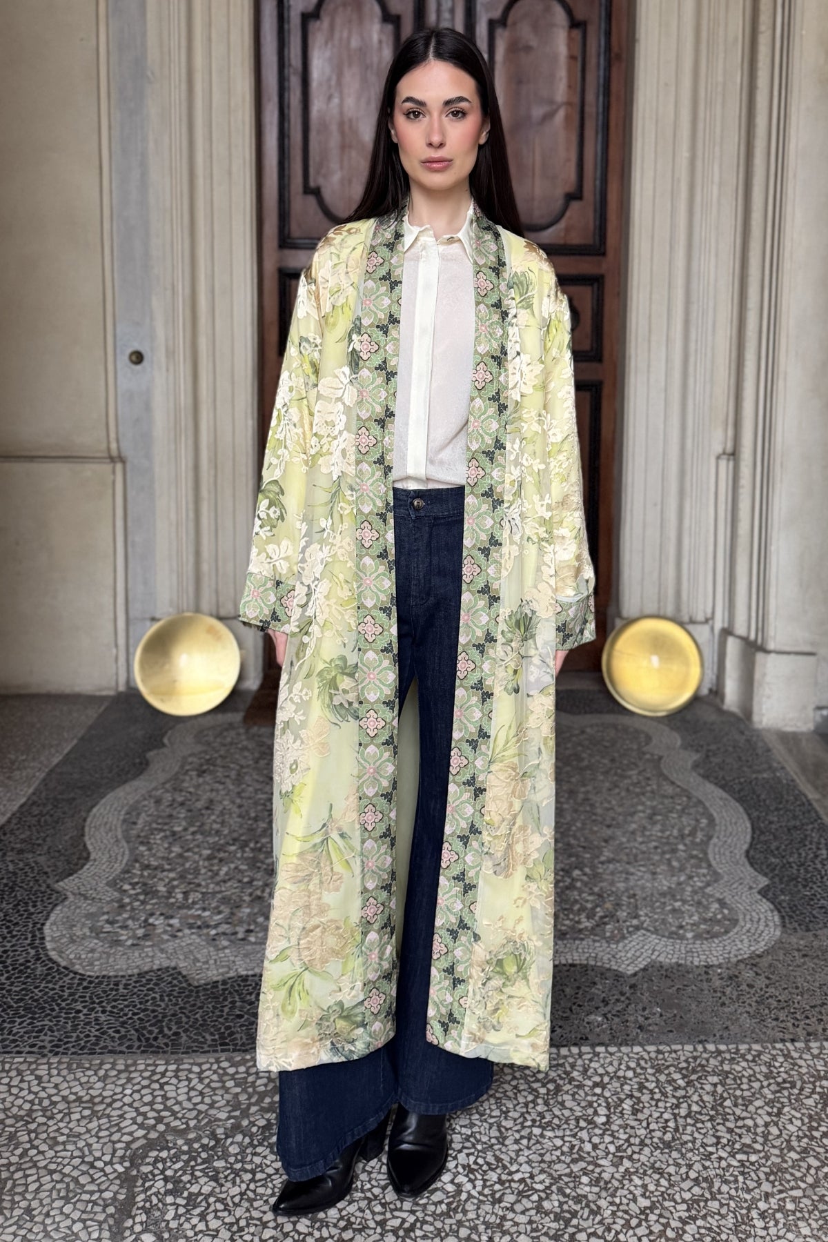 WU-SIDE - kimono devore lungo - CREMA VERDE
