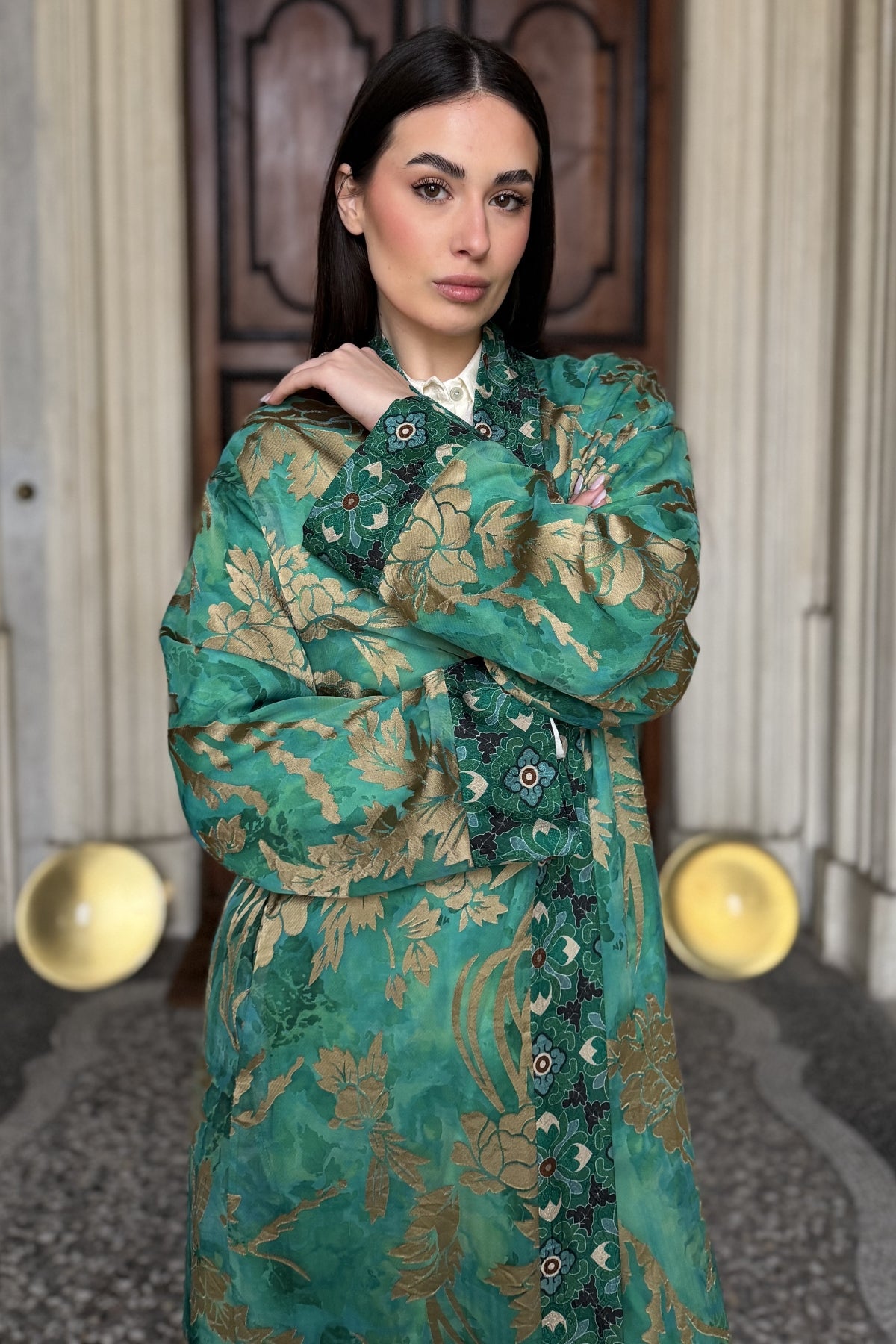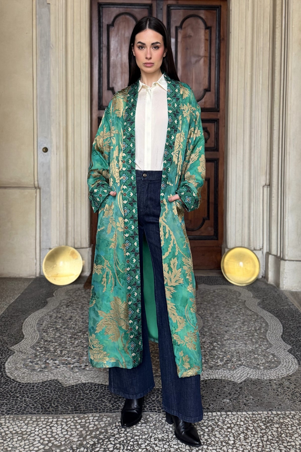 WU-SIDE - kimono devore lungo - SMERALDO