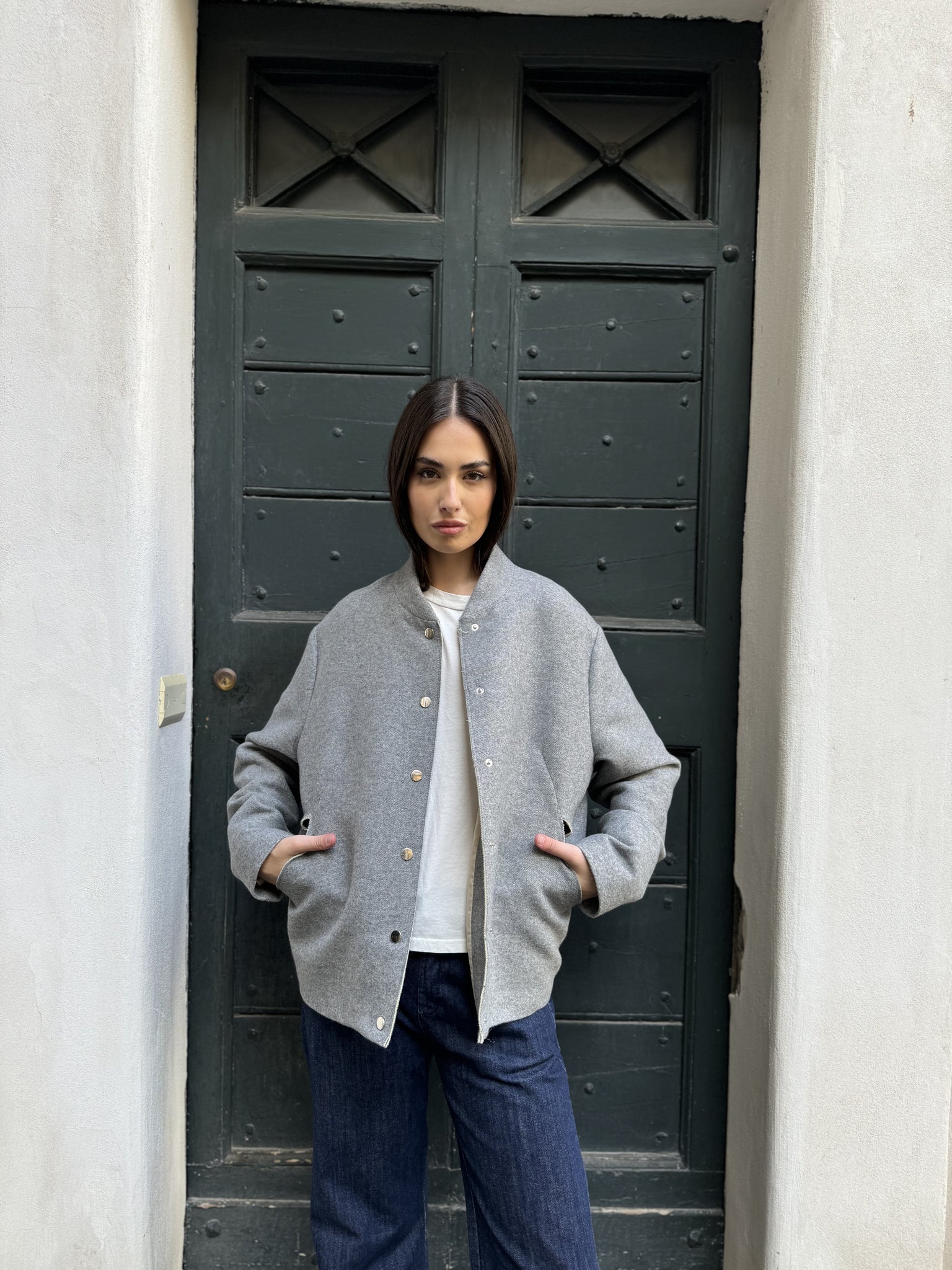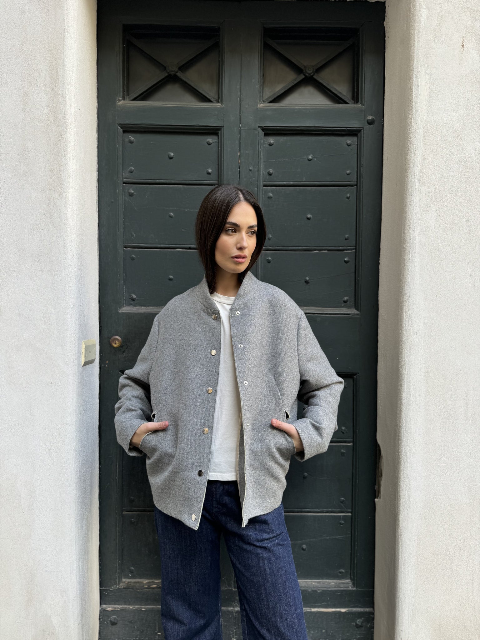 • Modello: giacca corta con collo classico