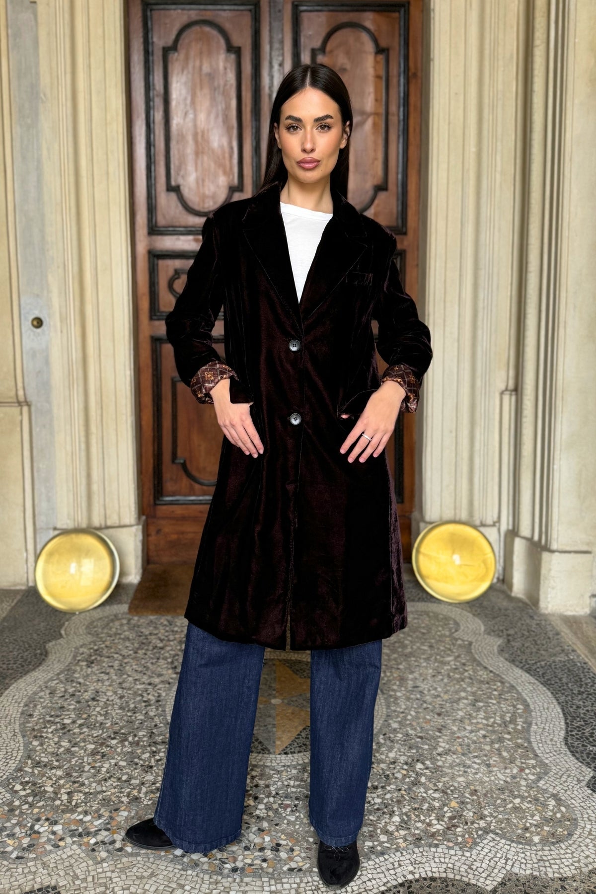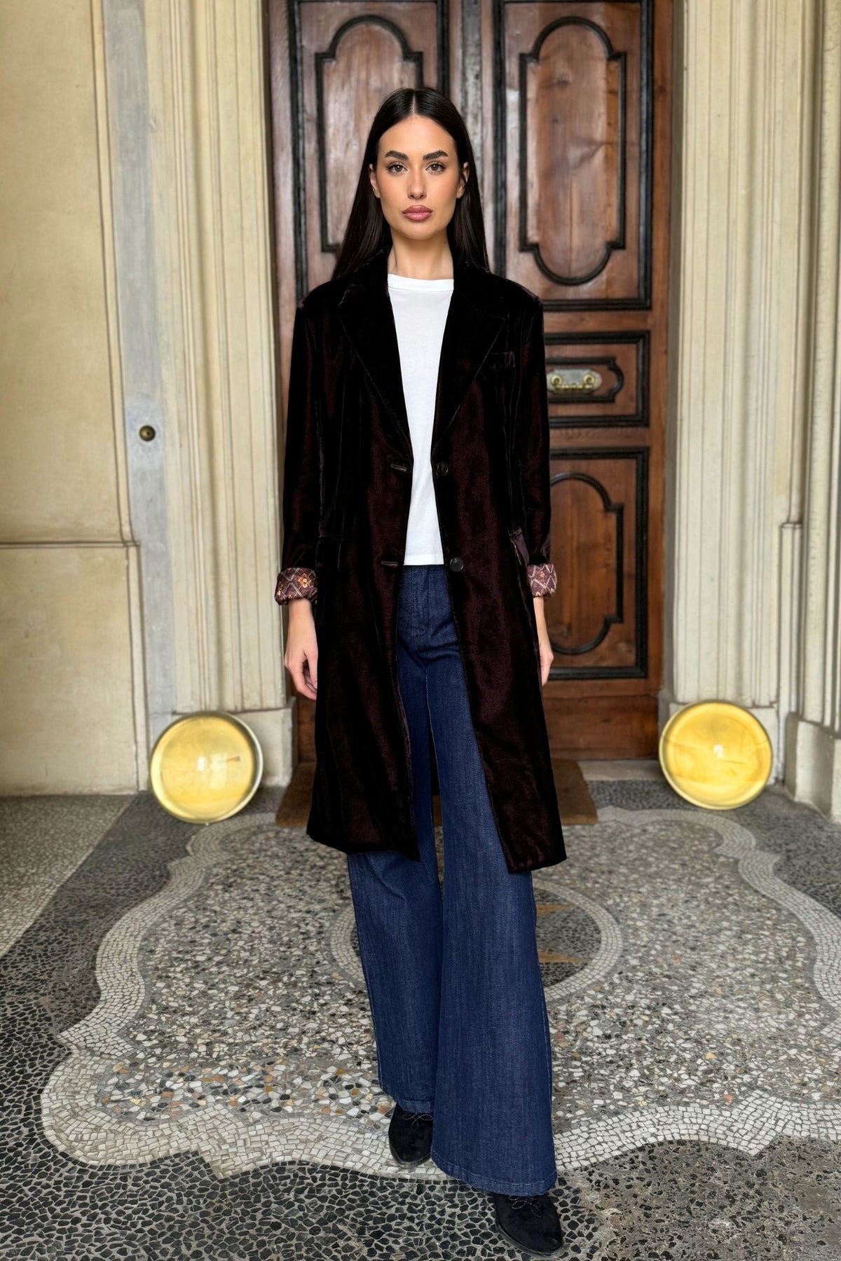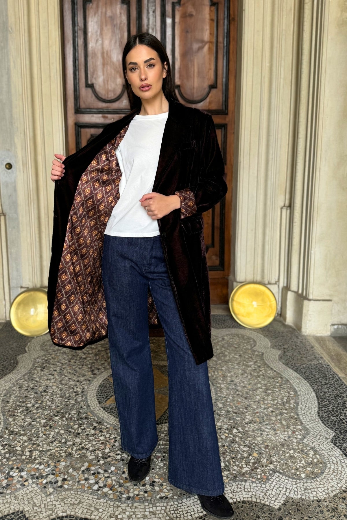 Un capo elegante e senza tempo, realizzato in velluto liscio color caffè.
