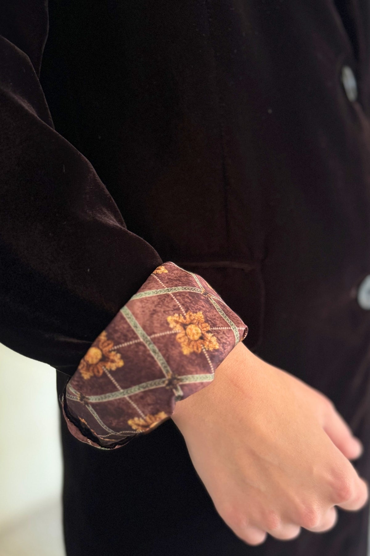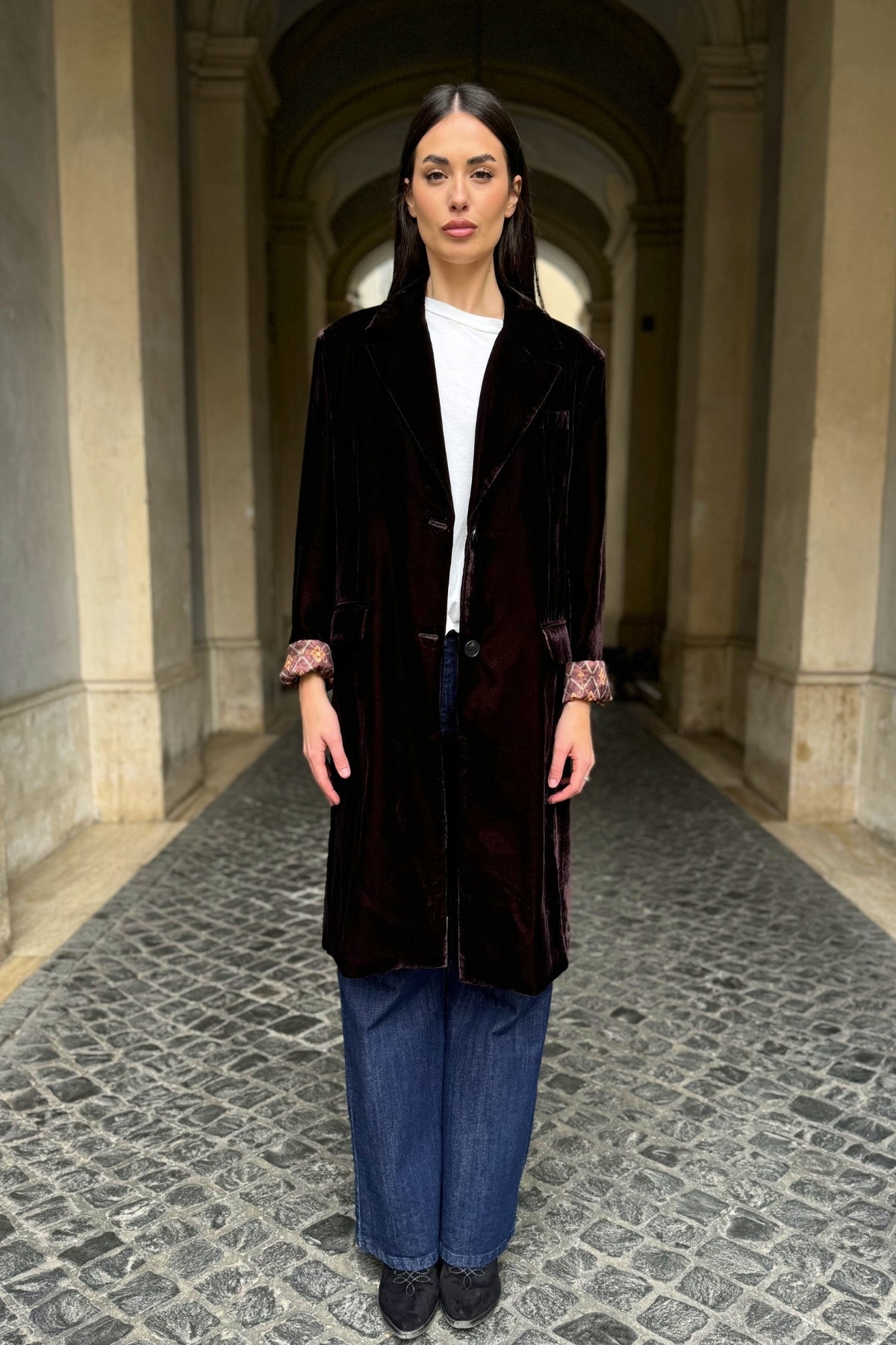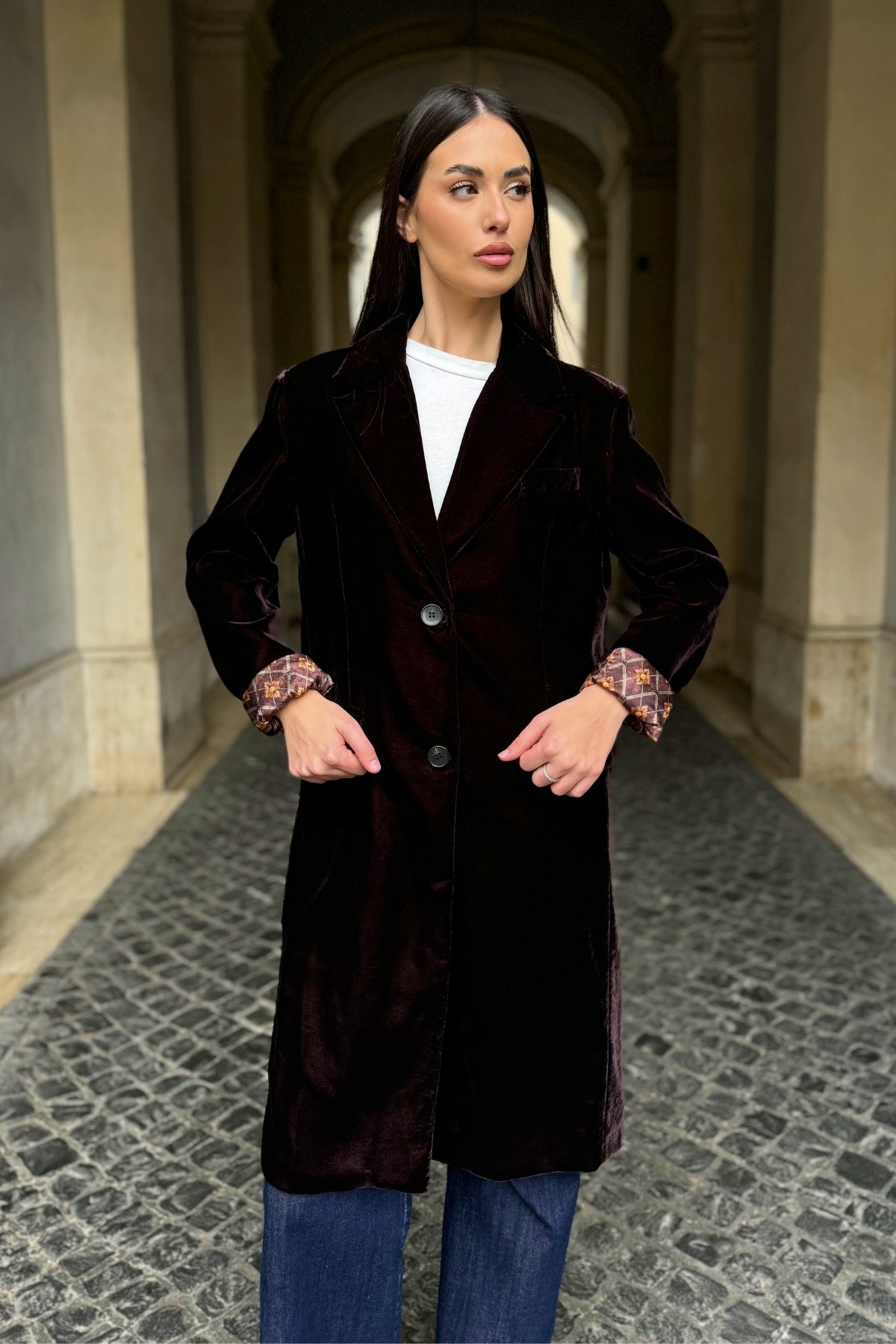 Un capo elegante e senza tempo, realizzato in velluto liscio color caffè.