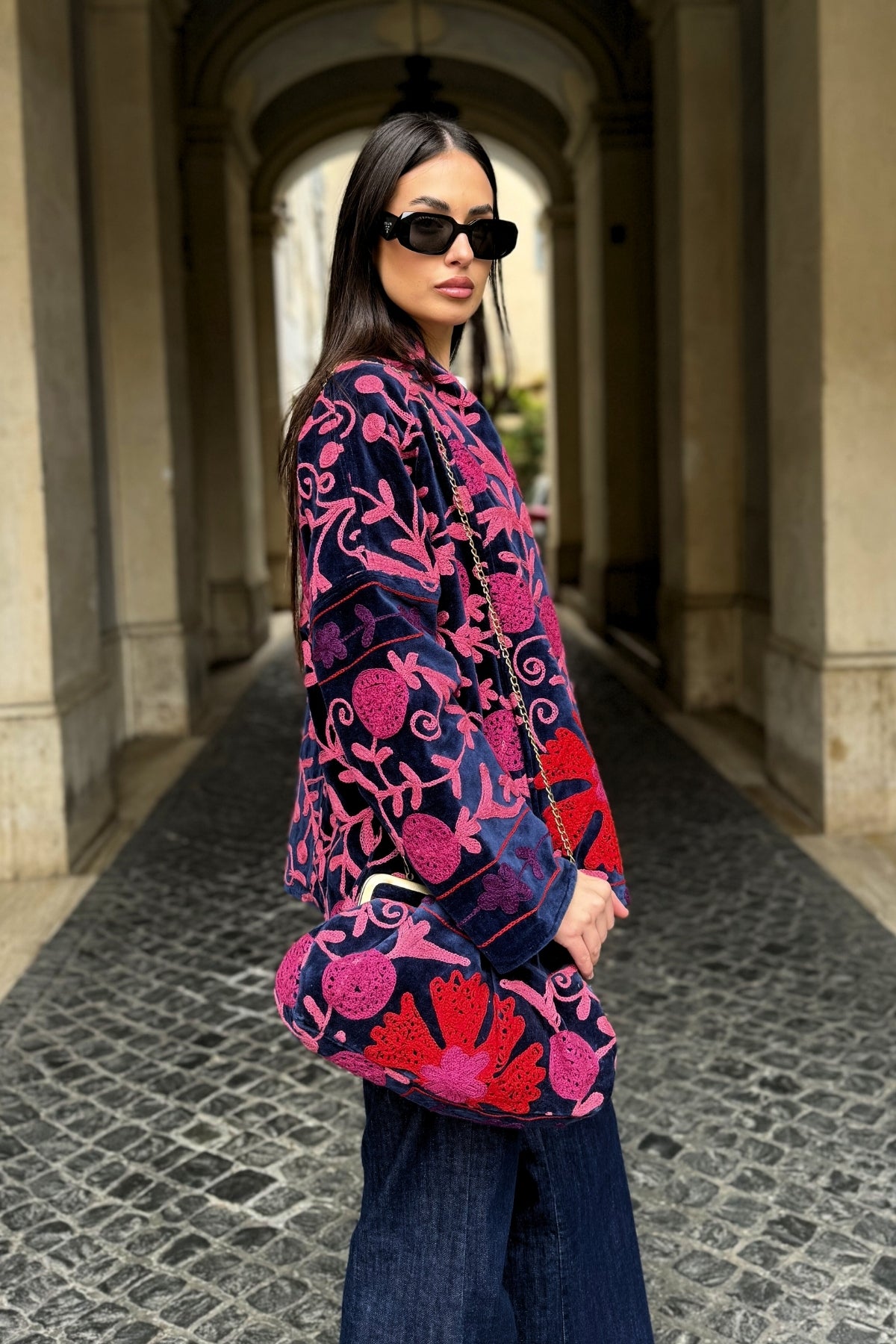 La borsetta Stella Ricamata a Mano, realizzata in velluto di cotone naturale, unisce la morbidezza del tessuto all’eleganza del ricamo artigianale. Ogni motivo è eseguito a mano, rendendo ogni borsa un pezzo unico, custode di un sapere antico e di una raffinatezza senza tempo.