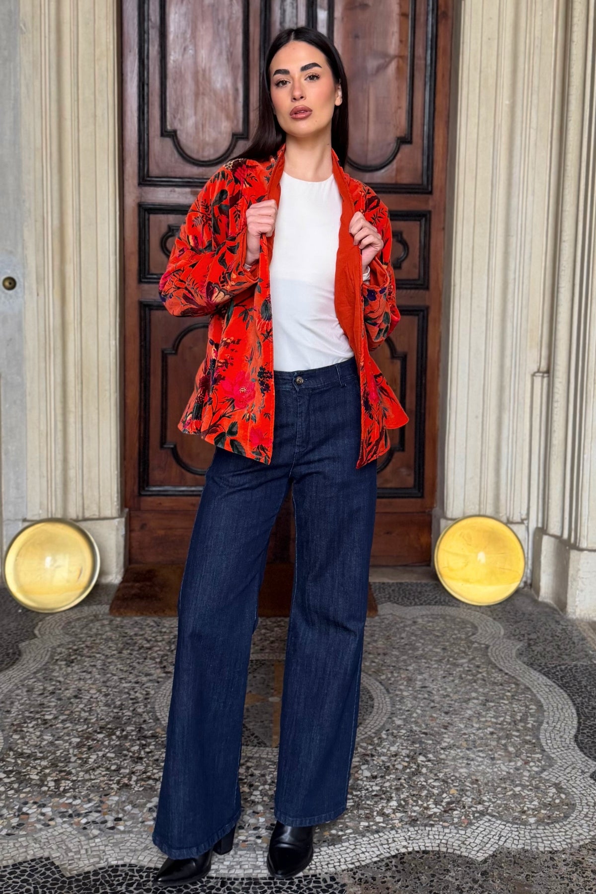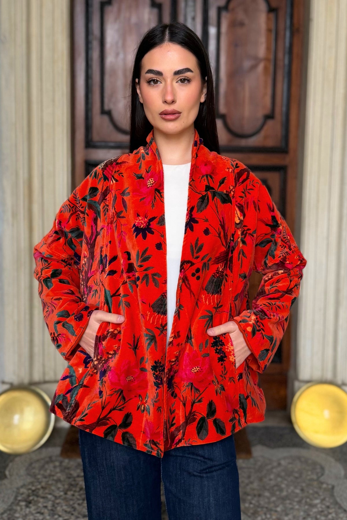 ARTEFILIA-MILANO - giacca uma velluto stampato - RAVELLO ARANCIO